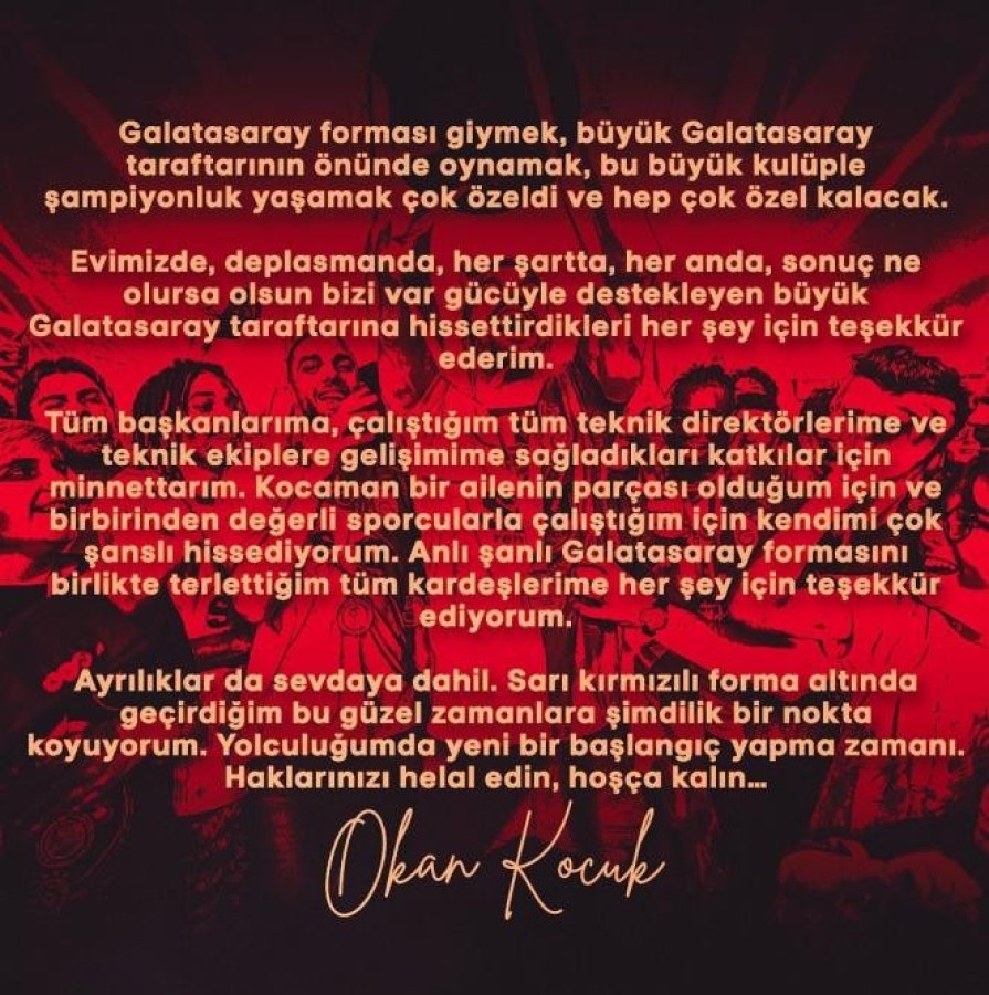 Kocuk veda mesajında, "Galatasaray forması giymek, büyük Galatasaray taraftarının önünde oynamak, bu büyük kulüple şampiyonluk yaşamak çok özeldi ve hep çok özel kalacak.