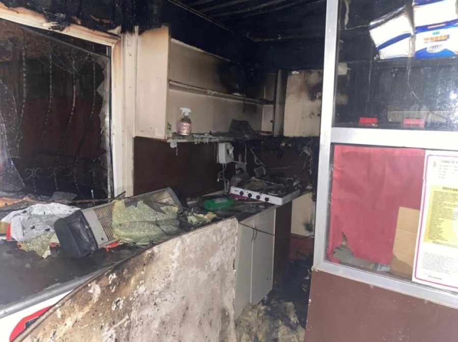 Çelik prefabrik yapıdaki kantinin içindeki gıda maddelerinin büyük kısmı yandı.