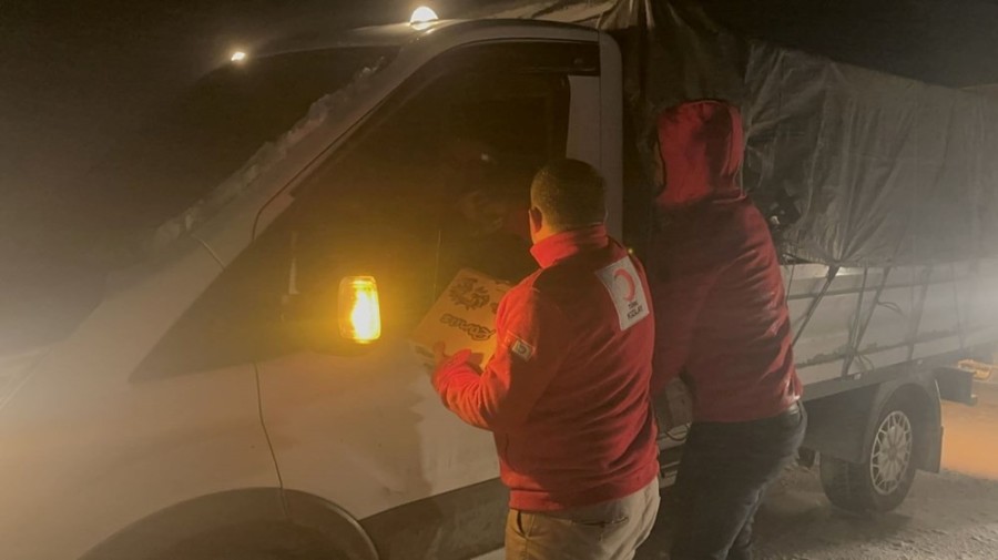 Olumsuz hava koşullarının etkili olduğu Çaldıran-Doğubayazıt yolu Tendürek mevkisinde gece araçlarıyla yolda kalan sürücülere Türk Kızılay Muradiye Şubesi gönüllülerince kumanya verildi.