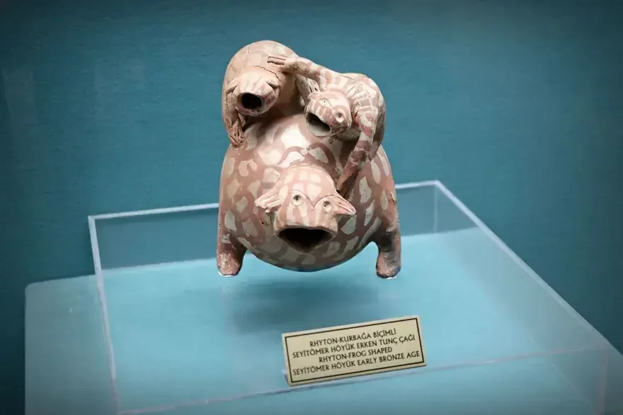 5 bin yıl öncesine ait "ryton" olarak bilinen kaptaki figürün, kurbağaların ilkbahar aylarındaki çiftleşme döneminde gruplar halinde araziye dağılmalarıyla ilgili olduğu belirtiliyor.