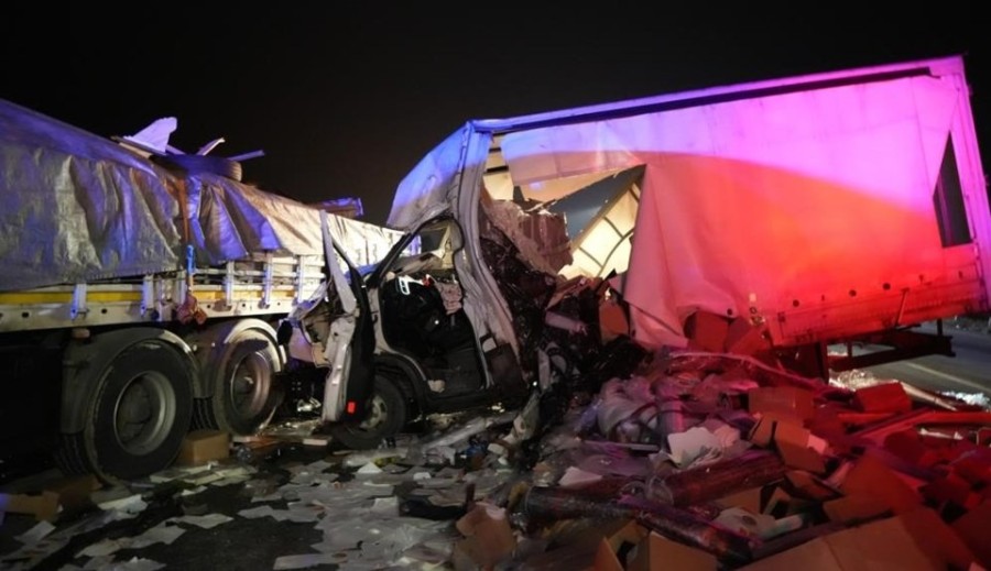Aynı istikamette seyreden Salim Ö. yönetimindeki kamyonet, emniyet şeridindeki lastiği patlayan TIR'ın dorsesine çarptı. Çarpmanın etkisiyle kamyonet otoyolda 2 şeridi kapattı.