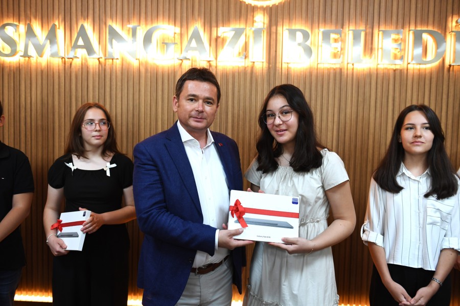 Osmangazi Belediye Başkanı Erkan Aydın, LGS (Liselere Geçiş Sistemi) ve YKS'ye (Yükseköğretim Kurumları Sınavı) Osmangazi Belediyesi'nin ücretsiz olarak hizmete sunduğu dijiders ile hazırlanarak dereceye giren öğrencileri ödüllendirdi.