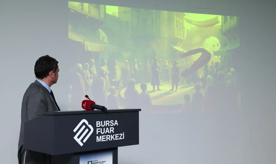 Mimarlar Odası Bursa Şubesi tarafından "Yaşamın, Kentlerin ve Mimarlığın Geleceği" ana temasıyla düzenlenen "Yerel Yönetimler Vizyon Projeler" oturumuna katılan Bursa Osmangazi Belediye Başkanı Erkan Aydın, burada gerçekleştirdiği sunum ile Osmangazi'de hayata geçirilmesi planlanan projeleri akademisyenlerle paylaştı.