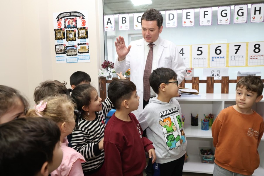 Osmangazi Belediyesi'nin kreşlerinde düzenlenen Meslek Tanıtım Günleri kapsamında Osmangazi Belediye Başkanı Erkan Aydın, kendi mesleği olan eczacılığı minik öğrencilere anlattı. Çocukların merak ettikleri soruları yanıtlayan Başkan Aydın, eczacılığın sağlık alanındaki önemini eğlenceli bir dille aktardı.