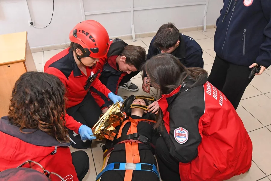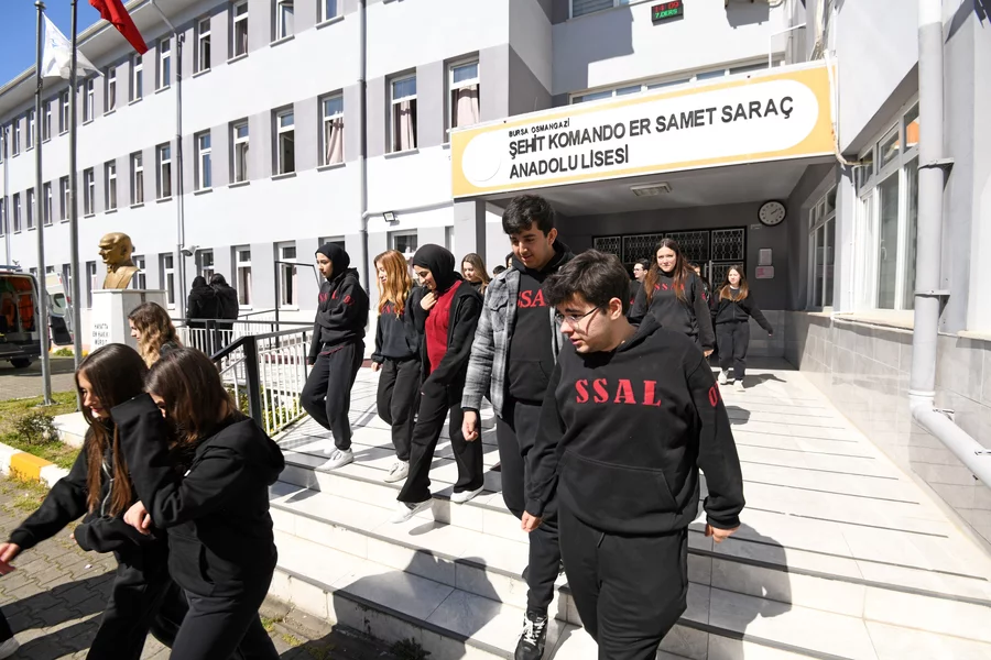 Osmangazi Belediye Başkanı Erkan Aydın, genç nesillerde afet bilincini artırmak amacıyla yürütülen eğitim ve tatbikat programı kapsamında Şehit Komando Er Samet Saraç Anadolu Lisesi öğrencileriyle bir araya geldi. Osmangazi Belediyesi Afet İşleri ve Risk Yönetimi Müdürlüğü tarafından düzenlenen, yaklaşık 900 öğrenci ile 55 personelin katılımıyla gerçekleştirilen kapsamlı organizasyonla öğrencilerin afetlere karşı hazırlıklı bireyler olarak yetişmesi hedeflendi.
