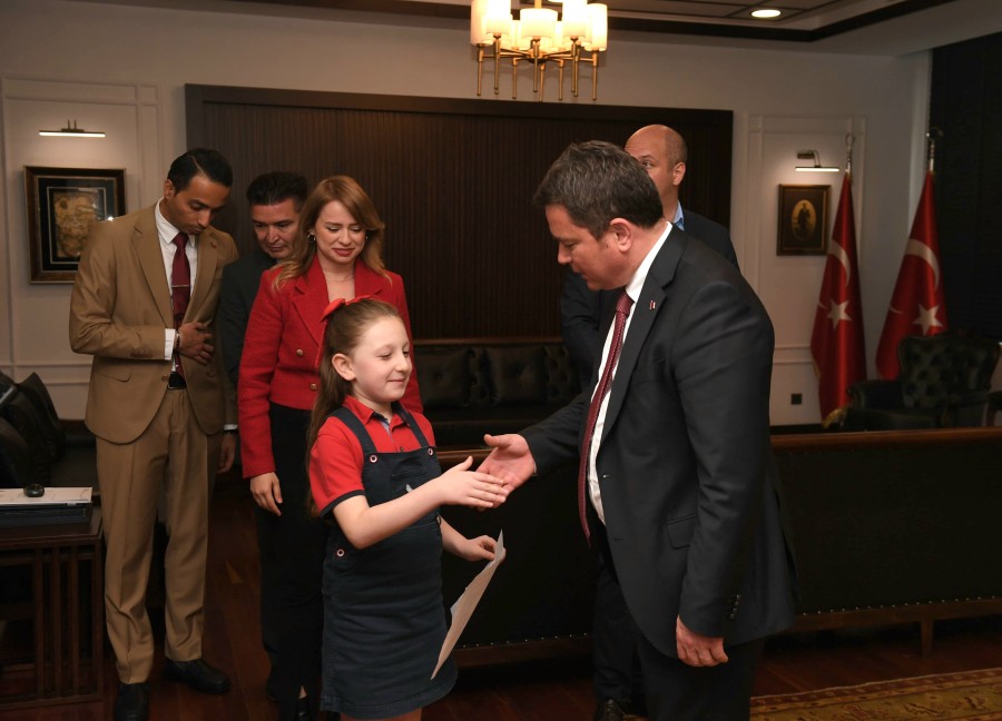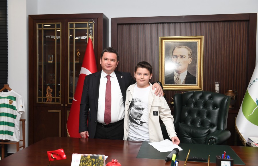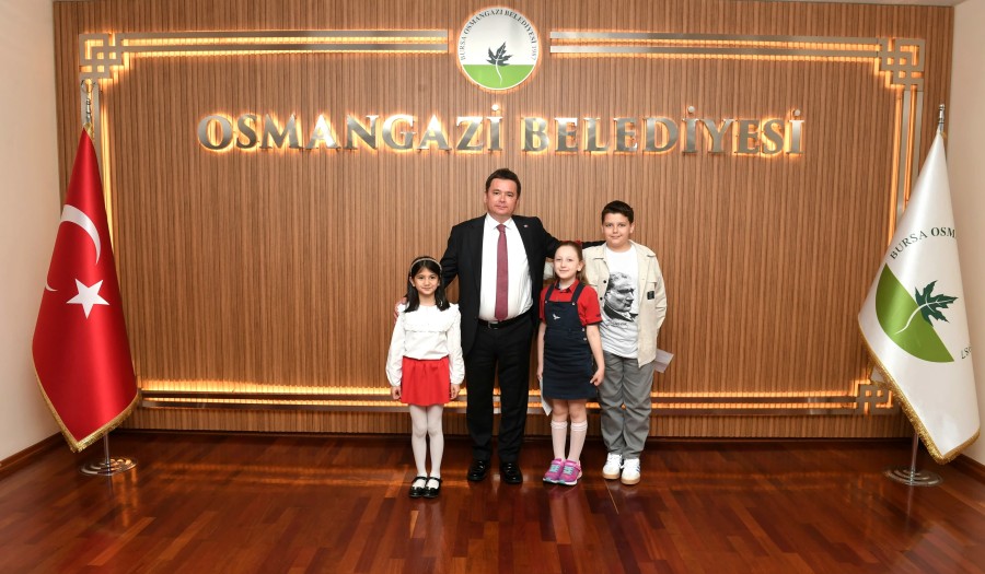 23 Nisan Ulusal Egemenlik ve Çocuk Bayramı'nın sevincini yaşayan çocuklar, Osmangazi Belediye Başkanı Erkan Aydın'ı ziyaret etti. Başkan Aydın, bu anlamlı gün dolayısıyla koltuğunu, Sadi Etkeser İlkokulu Okulu öğrencisi Zeynep Azra Bilik, Dilek Özer Ortaokulu öğrencisi Selim Anıl Şen ve Sınav Koleji öğrencisi Duru Kılıç'a devretti. Ailelerinin ve öğretmenlerinin de eşlik ettiği temsili törende Başkan Aydın'ın makamına oturan çocuklar, unutamayacakları bir anı yaşadı.