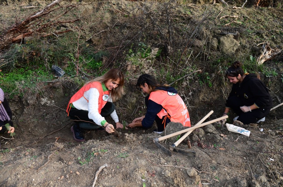 Çevre bilincini artırmak ve gelecek nesillere daha yeşil bir kent bırakmak amacıyla çalışmalarını hız kesmeden sürdüren Osmangazi Belediyesi, Çağlayan Mahallesi'nde kapsamlı bir fidan dikimi gerçekleştirdi. Bursa'nın fethinin 700'üncü yılına özel olarak 700 fidan toprakla buluşturulurken, '1 Fidan 1 Kitap' bağışlarıyla büyüyen bu anlamlı projenin 700. Yıl Ormanı'na dönüşmesi için ilk adım hayata geçirildi. Belediye kütüphanelerine ve vatandaşlardan gelen kitap bağışları, kesimlerde yok olan ağaçların yeniden yeşermesine katkı sağlayan birer fidana dönüştü. Bu çalışma sayesinde kentin geleceğine doğayla iç içe, daha canlı ve umut veren bir çevre kazandırılması hedeflendi.