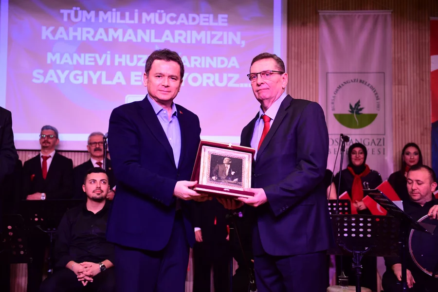 Osmangazi Belediye Başkanı Erkan Aydın, tiyatro sanatçısı Akif Oktay ve şef Fatih Şengöçmen'e katkılarından dolayı Ulu Önder Mustafa Kemal Atatürk plaketi takdim etti. Protokol üyeleri daha sonra hep birlikte gecenin anısına hatıra karesinde yeniden bir araya gelerek, birlik ve beraberliği paylaştı.