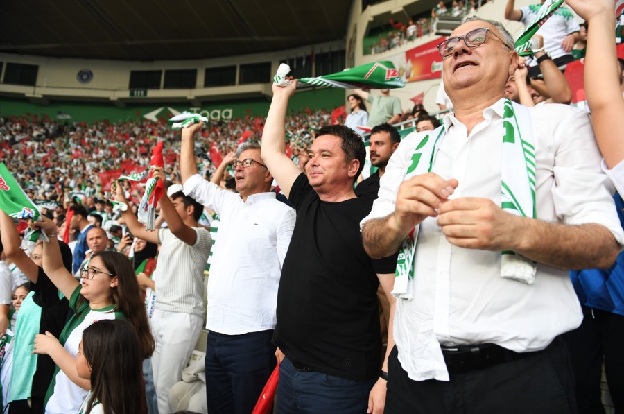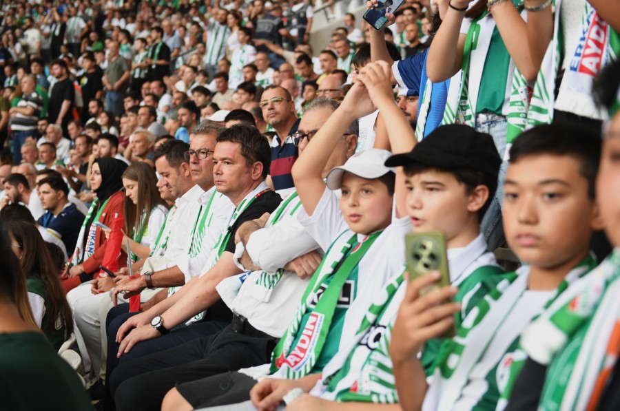 Bursaspor'a yeni sezonda başarılar dilerek sözlerine başlayan Osmangazi Belediye Başkanı Erkan Aydın, "Bugün Osmangazi İlçesinin 5 mahallesinden 100 çocuğu Bursaspor maçını izlemek için stada getirdik. Çocuklar büyük heyecan ve mutluluk yaşadı. Çocukları mutlu görünce bizde mutlu oluyoruz. Bursaspor lige hafta 8-0'lık galibiyetle başladı ve bugünde kazandı umarın tüm sezon maçlarını kazanır ve tekrar hak ettiği yere gelir en büyük taraftar Bursaspor taraftarı" dedi.