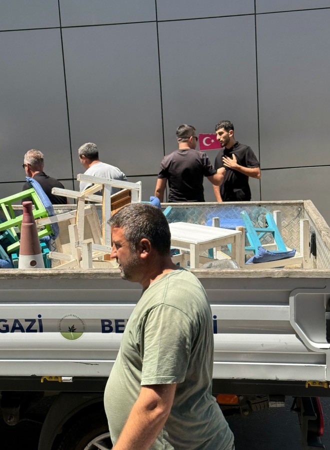 Vatandaşlardan gelen şikayetlerin artması üzerine hareke geçen zabıta ekipleri, işyerleri tarafından koyulan masa ve sandalyeler nedeniyle yürünmez hal alan kaldırımlardaki işgal malzemelerini topladı.