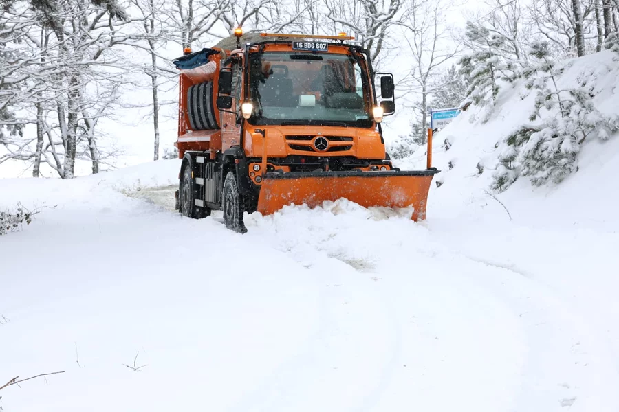 Kar yağışının yüksek kesimlerde etkisini göstermesiyle birlikte Osmangazi Belediyesi Fen İşleri Müdürlüğü ekipleri karla kapanan yolları açmak için harekete geçti.