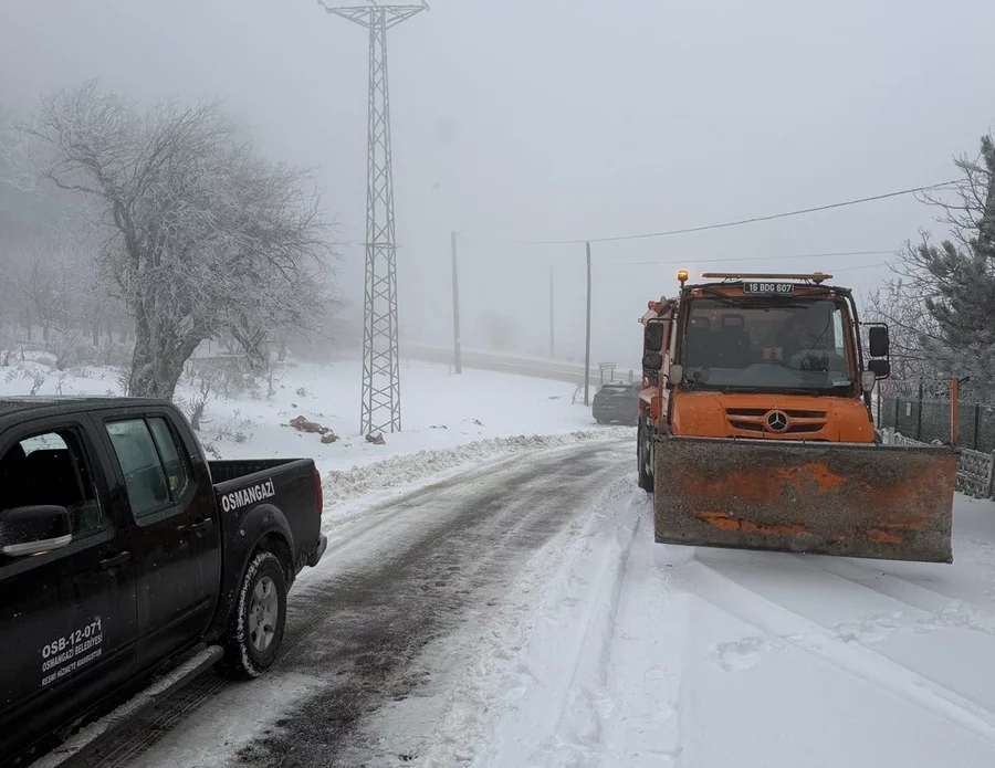 Hayatı olumsuz etkileyen iklim koşullarına yönelik 7 gün 24 saat hazırda bekleyen Osmangazi Belediyesi ekipleri, kentte gündüz saatlerinde görülen kar yağışlarıyla birlikte harekete geçti. Osmangazi Belediyesi Fen İşleri Müdürlüğü'ne bağlı ekipler, 7 mahalleye anında müdahale ederek, bölgedeki ana ve ara yolları kar küreme ve tuzlama çalışmalarıyla güvenli hale getirdi.