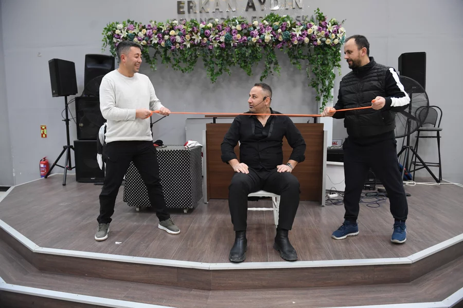 Program kapsamında sahnelenen sihirbazlık gösterisi de çocukların yoğun ilgisini çekti. Birbirinden ilginç numaralar sergileyen sihirbazın gösterileri sırasında çocuklar şaşkınlıklarını gizleyemezken, sahnede yaşanan renkli anlar salonda büyük bir heyecan yarattı. Sihirbazın gerçekleştirdiği numaraları büyük bir dikkatle takip eden çocuklar, gösteri boyunca alkışlarıyla ve kahkahalarıyla eğlenceye ortak oldu.