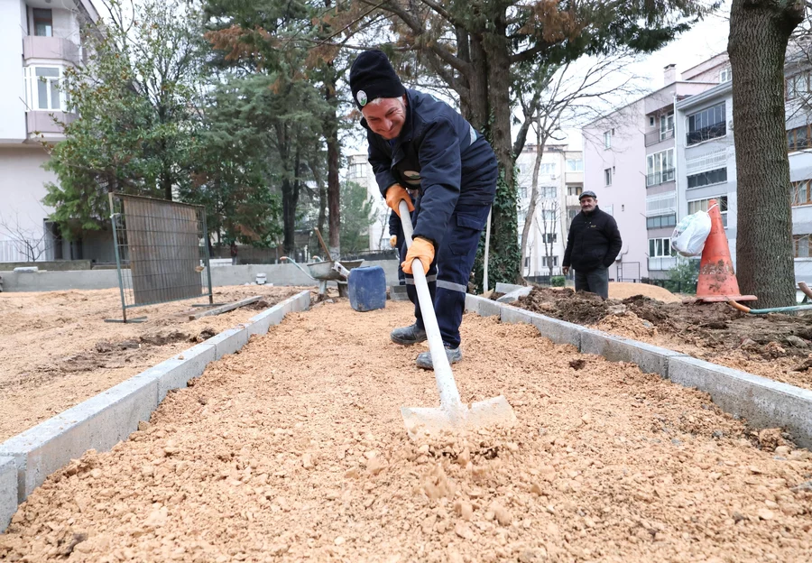 Dikkaldırım Mahallesi'nde 26 yıl önce yapılan ve kullanım nedeniyle eskiyen Buket Parkı için harekete geçen Osmangazi Belediyesi Park ve Bahçeler Müdürlüğü ekipleri, çalışmalarını hızla sürdürüyor.