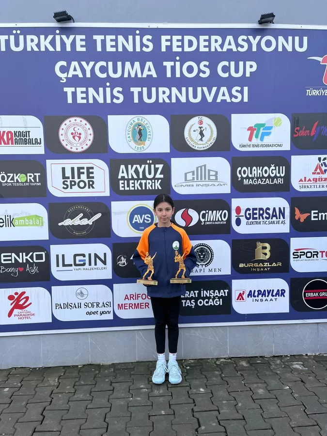Osmangazi Belediyespor Tenis Takımı sporcularından Azra Özyardımcı, Ulusal 12 Yaş Kış Kupası'nda çifte başarıya imza attı.
