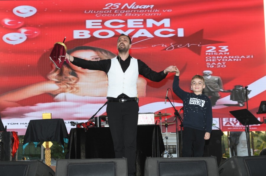Osmangazi Belediyesi tarafından 18-23 Nisan tarihleri arasında düzenlenen 23 Nisan Ulusal Egemenlik ve Çocuk Bayramı kutlamaları, başarılı şarkıcı Ecem Boyacı konseri ile sona erdi. Genç kuşağın sevilen isimlerinden Ecem Boyacı, güçlü sahne performansı ve şarkılarıyla çocuklara unutamayacakları bir müzik ziyafeti sundu. Boyacı'nın konserine gelen çocuklar, ellerindeki Türk bayraklarını sallayarak şarkılara hep bir ağızdan eşlik etti. Genç şarkıcı, muhteşem konseri ile sadece çocukların değil yetişkinlerin de büyük beğenisini topladı.