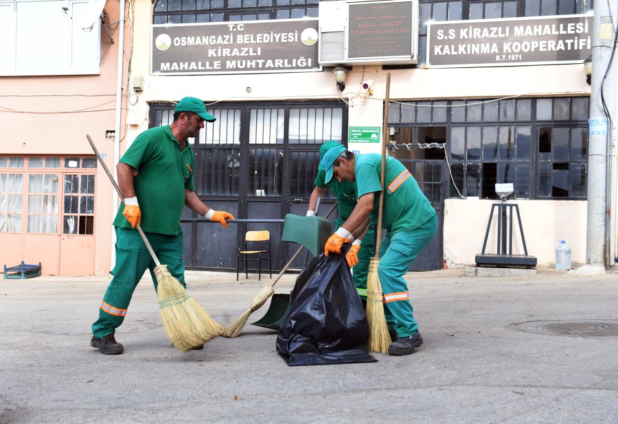 Bu hizmetin yanında, mahallelerde oluşturulan mahalle ekipleriyle de ilçe merkezindeki sokakların temizliği periyodik olarak yapılıyor. Ayrıca süpürgeci ekipleri, Osmangazi'nin ova ve dağ bölgesindeki kırsal mahallelerde düzenli olarak süpürme çalışması gerçekleştiriyor.