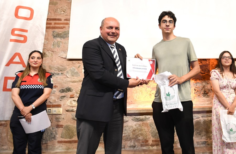 Sertifika alan öğrenciler Osmangazi Belediye Başkan Yardımcısı Tolga Kornoşor, tarafından çeşitli hediyelerle ödüllendirildi.