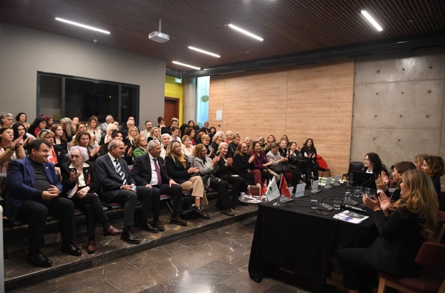 Panelin ardından TKB İzmir Şubesi Yönetim Kurulu Başkanı Sevtap Şirin'in 'Haremden Özgürlüğe Türk Kadının Bağımsızlık Öyküsü' adlı sergisi açıldı.
