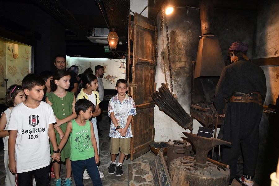 Bu hafta Bursa Kent Müzesi'ni gezen minik arkeologlar, Arkeolog Tolga Şevik rehberliğinde sergileri keşfetti. Merak ettikleri soruları sorma fırsatı bulan çocuklar, müzenin en alt katındaki 18. yüzyıl Bursa'sına ait tematik sergi 'El Sanatları Çarşısı'na hayran kaldı. Bıçakçı gibi geleneksel zanaatlara ait dükkân canlandırmaları, çocukların en çok ilgisini çeken bölümler arasında yer aldı.