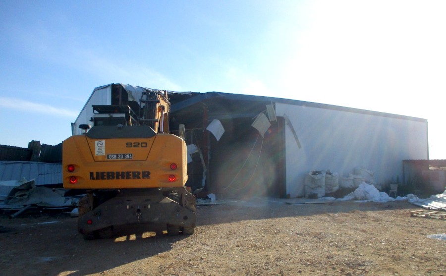 Geniş güvenlik önlemleri altında gerçekleştirilen yıkımda, kaçak depo iş makinesi ile yıkılarak kullanılamaz hale getirildi.