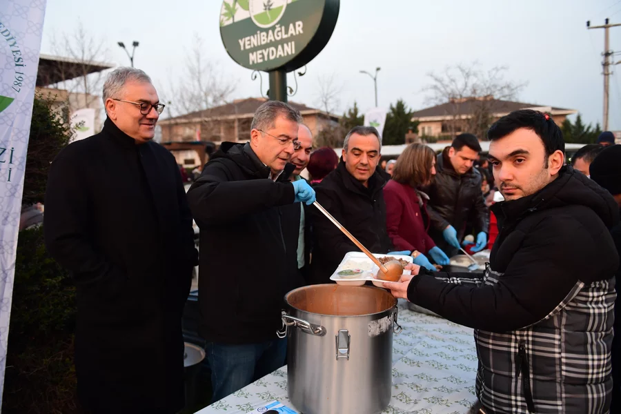 Osmangazi Belediyesi'nin Ramazan ayı boyunca ilçenin farklı mahallelerinde düzenlediği iftar programları, birlik ve beraberlik duygusunu güçlendirmeye devam ediyor. Ramazan'ın bereketini ve paylaşma kültürünü mahallelere taşıyan iftar programlarının bir başka durağı Yenibağlar Mahallesi oldu. Yenibağlar Meydanı'nda düzenlenen iftar programına mahalle sakinleri büyük ilgi gösterdi. Meydanı dolduran yüzlerce vatandaş, kurulan gönül sofralarında bir araya gelerek hem komşuluk bağlarını güçlendirdi, hem de Ramazan ayının paylaşma ruhunu birlikte yaşadı. Ezanın okunmasıyla birlikte oruçlar açılırken, vatandaşlar aynı sofrayı paylaşmanın mutluluğunu yaşadı.