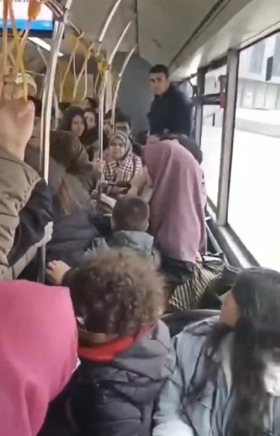 Küfürlerin havada uçuştuğu kavgada, otobüste bulunan bazı vatandaşların kadınları ayırmaya çalıştığı, bazılarının ise hayretle izledikleri yer alıyor.