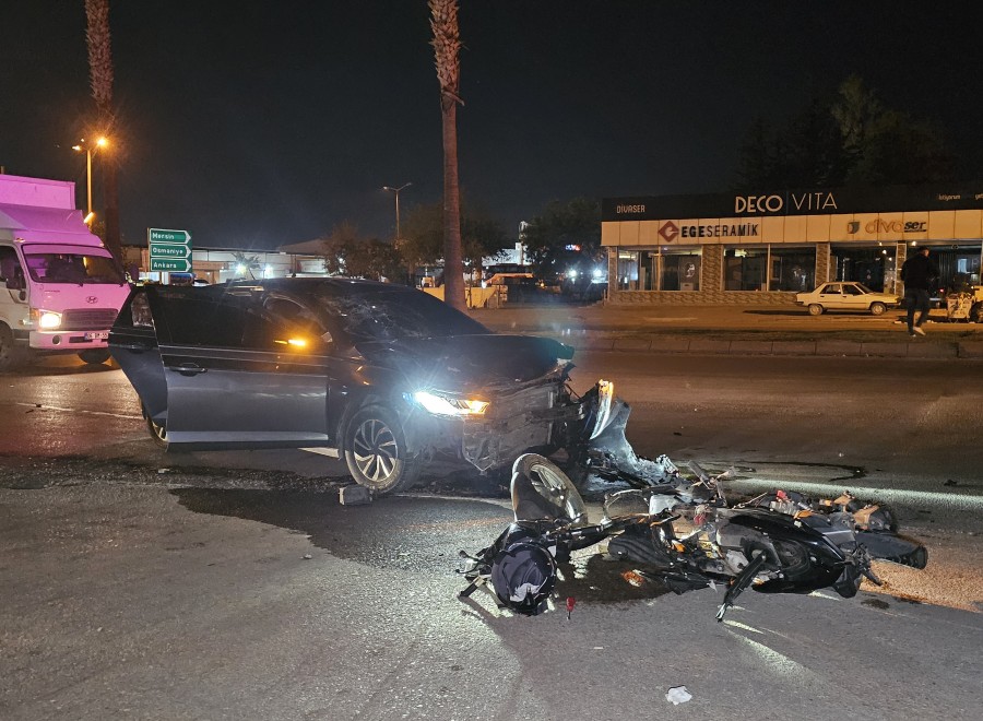Motosiklet sürücüsü çarpışma sırasında yola savrulurken, otomobil ise altına aldığı motosiklet ile yaklaşık 50 metre daha ilerledikten sonra durabildi.
