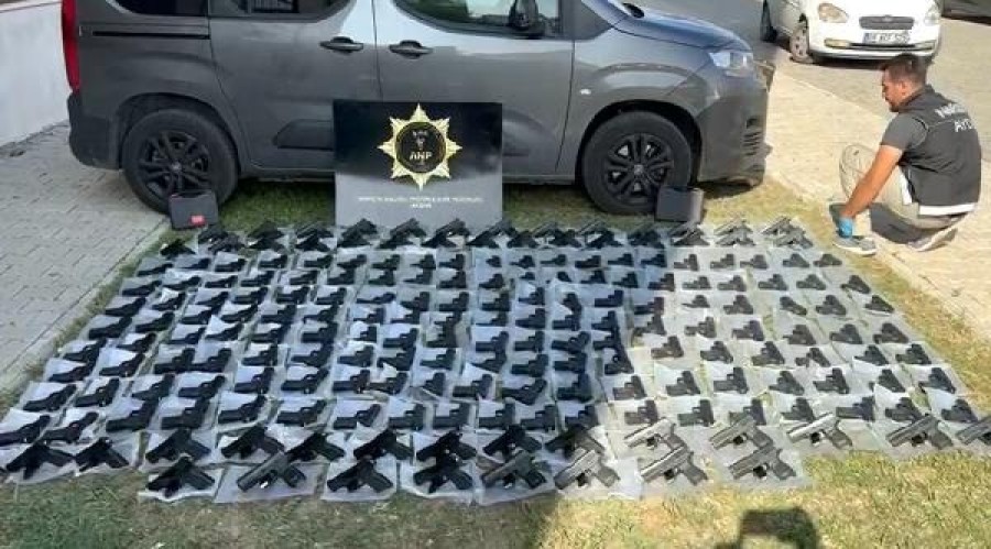 Aydın'da, polisin durdurduğu otomobilde, paketlenmiş halde ruhsatsız 199 tabancayla yakalanan 2'si kadın 3 şüpheli gözaltına alındı.