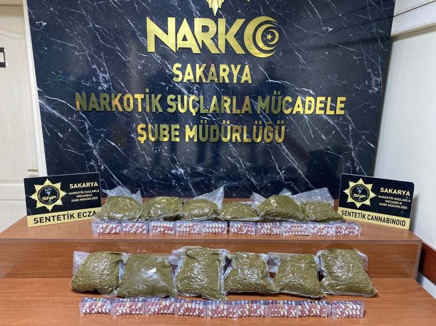 Sakarya'da durdurulan otomobilde yapılan aramada 12 kilo 660 gram bonzai ile bin 81 uyuşturucu hap ele geçirildi, 5 şüpheli gözaltına alındı.