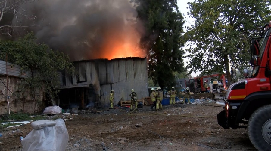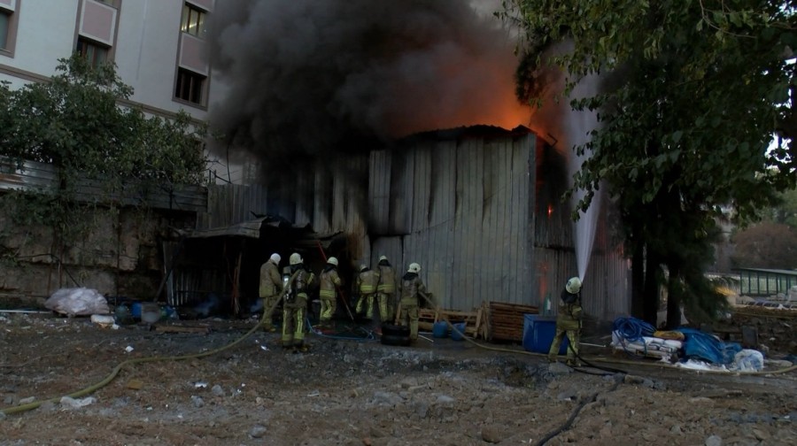 Kimyasal ve inşaat malzemelerinin depolandığı alanda başlayan yangın kısa sürede büyüdü.