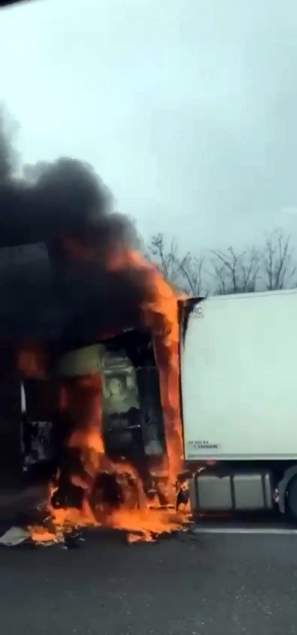 TEM Otoyolu Düzce geçişinde tırın kupası alev topuna döndü. İtfaiyenin müdahalesi ile söndürülen yangında kupa kullanılamaz hale geldi.