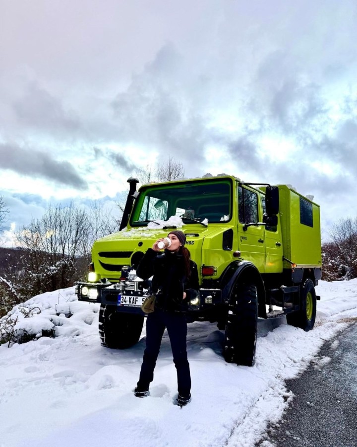 Oyuncunun lüks kamyonuyla karlar üstünde verdiği pozlar sosyal medyada çok konuşuldu.