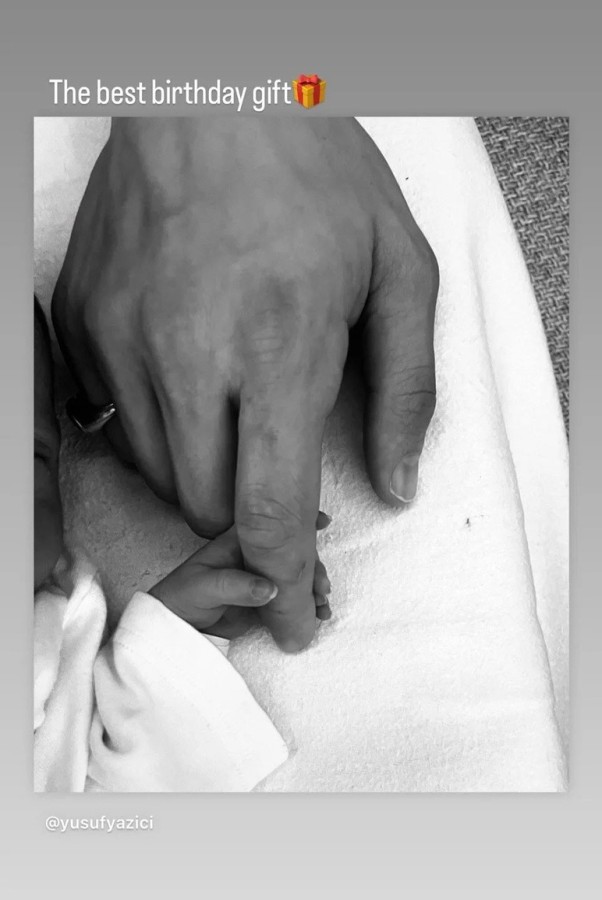 Oğlunun doğum gününde yani 29 Ocak'ta dünyaya geldiğini açıklayan Yazıcı, "En güzel doğum günü hediyesi" ifadelerini kullandı. Melisa Aslı Pamuk da eşinin paylaşımını kalp emojisiyle yayınladı.