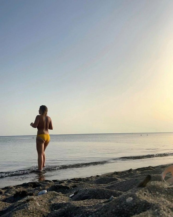 Yoğun iş temposuna ara vererek Yunanistan'a tatile giden Öztekin, plajda üstsüz olduğu bir fotoğrafı paylaştı.