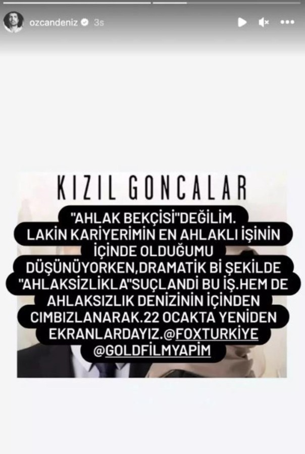 Başrollerini Özcan Deniz ile Özgü Namal'ın paylaştığı Kızıl Goncalar dizisi ilkk günden beri gündemde. RTÜK'ün program durdurma cezası nedeniyle yayınlanamayan Kızıl Goncalar'ın başrol oyuncularından Özcan Deniz sonunda isyan etti.