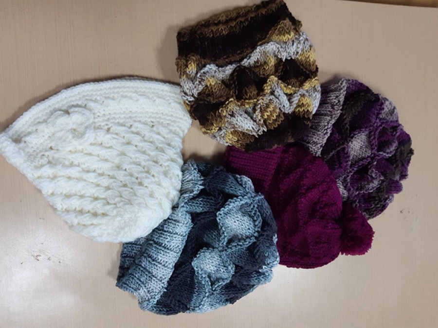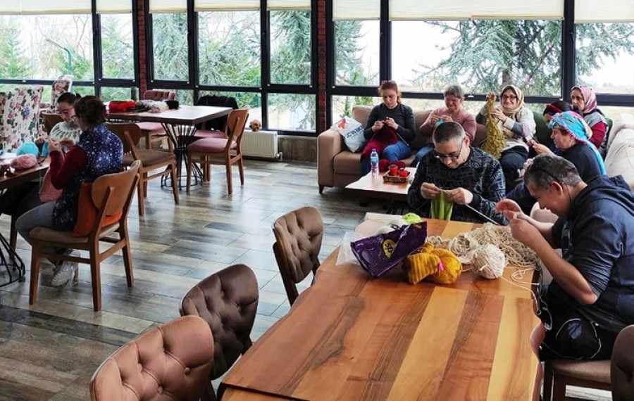 Engelsiz Yaşam Merkezi'nde bir araya gelen özel bireyler ve aileleri, depremzedelere gönderilmek üzere atkı, bere ve patik ördü.