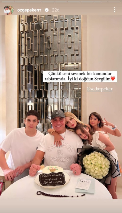 Peker'in eşi Özge Peker, Instagram hesabından yaptığı paylaşımla Sedat Peker'in doğum gününü kutladı.