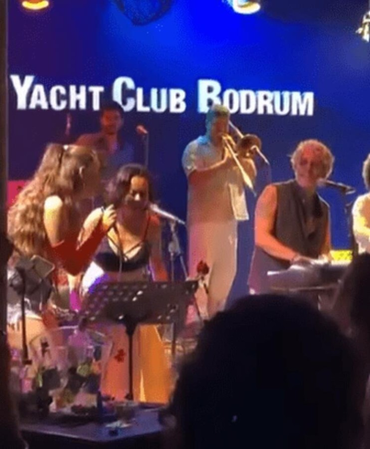 Sahnede çılgınlar gibi eğlenen güzel oyuncu daha sonra mikrofonu eline alarak kısa bir konuşma yaptı.