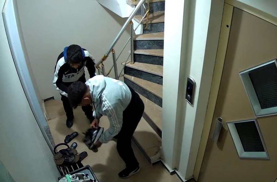Bir apartmana hırsızlık için giren 2 şüpheli apartman dairelerinin önündeki ayakkabıları incelediği esnada gördükleri pahalı ayakkabı karşısında şaşkınlıklarını gizleyemeyerek birbirlerine "çak" yaptı.