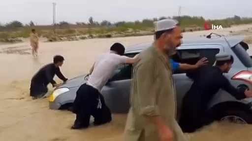 Belucistan'da 15 kişiyi taşıyan minibüs sel sularına kapıldı