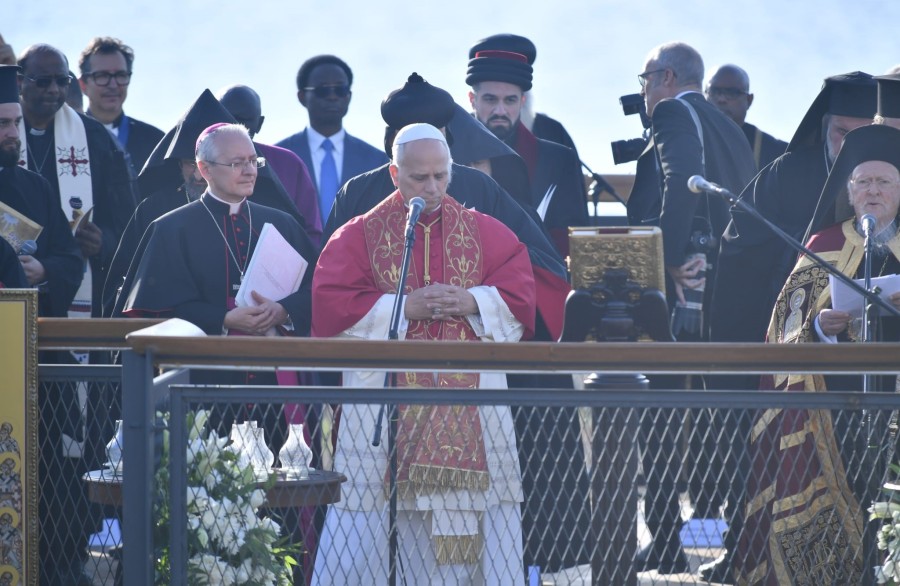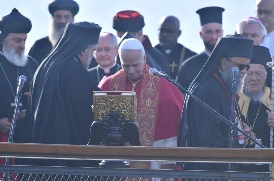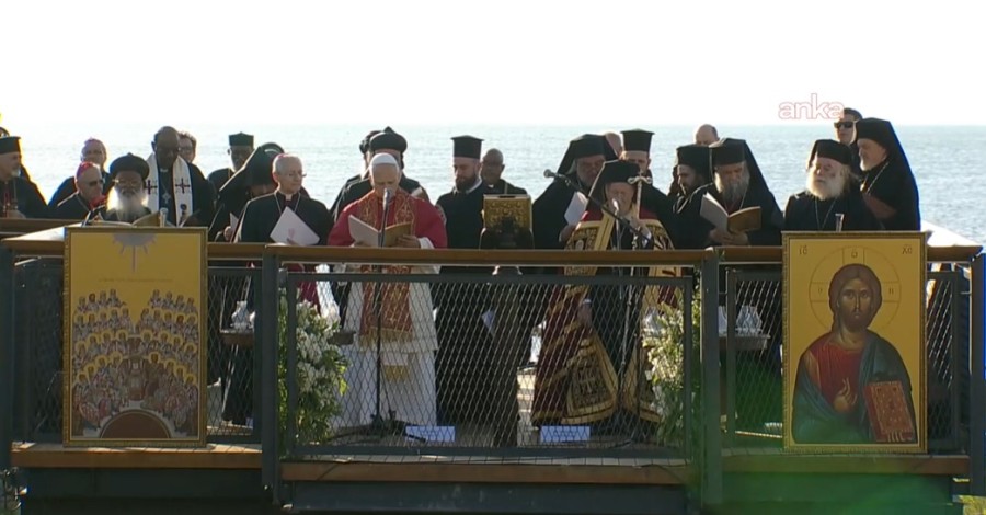 İlk İznik Konsili'nin yapıldığı yer olarak bilinen bu bazilikada gerçekleştirilen ayini yöneten Papa incilden ayetler okudu.