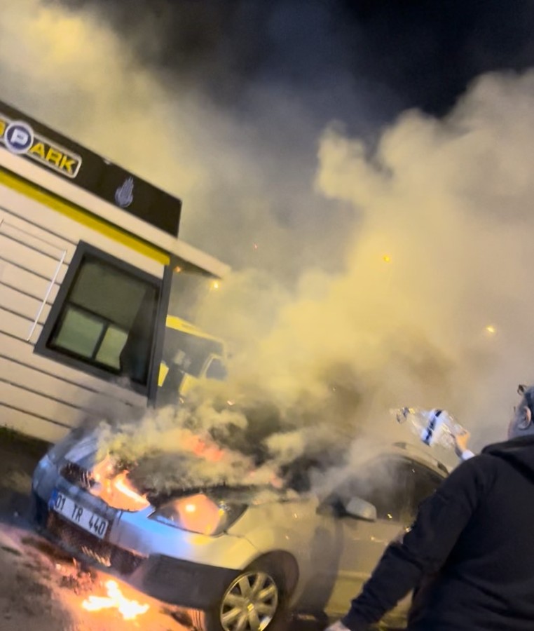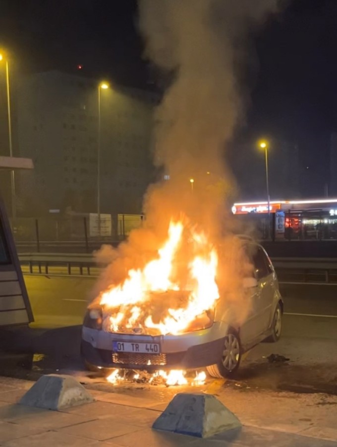 Edinilen bilgiye göre, yan yolda park halinde bulunan 01 TR 440 plakalı otomobilin motor kısmı henüz bilinmeyen bir nedenle yanmaya başladı.