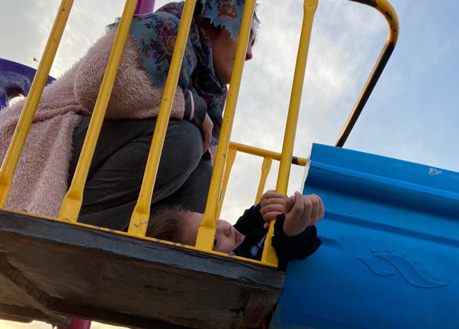 Söğütlü Mahallesi Şamil Basayev Caddesi'ndeki parka ailesi ile giden Mira Köksöre, kaydıraktan kaymak istedi.