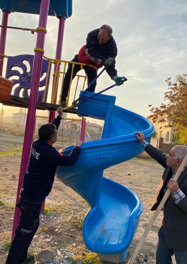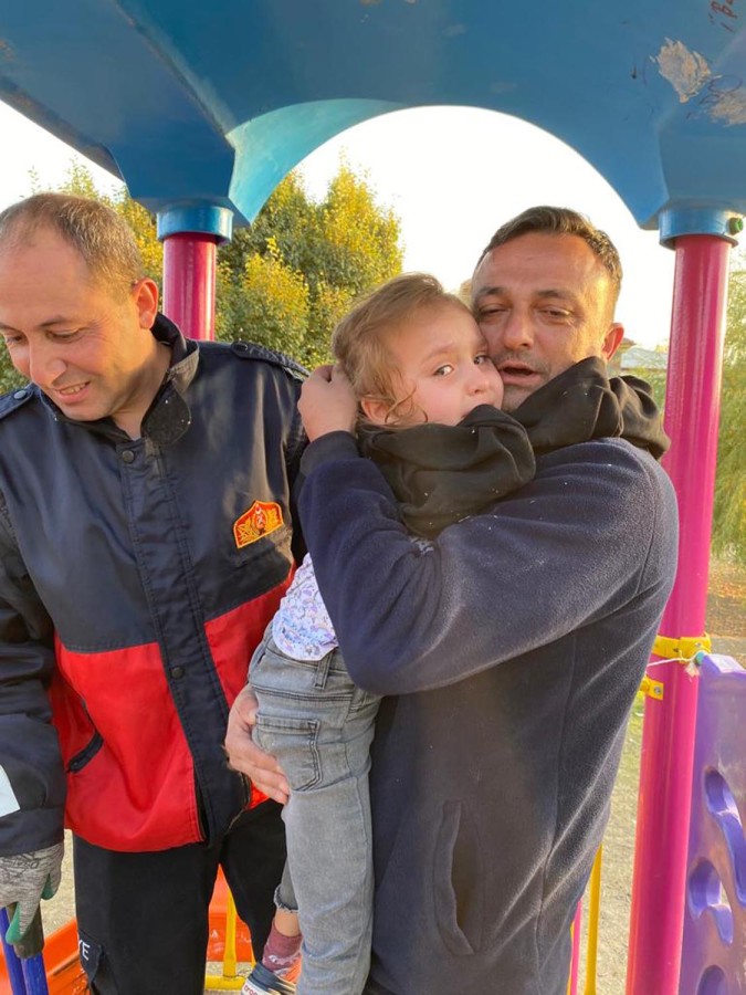 Iğdır'da parkta oynarken bileği kaydırak ile demir korkuluğa sıkışan Mira Köksöre (4), itfaiye ekiplerince kurtarıldı.