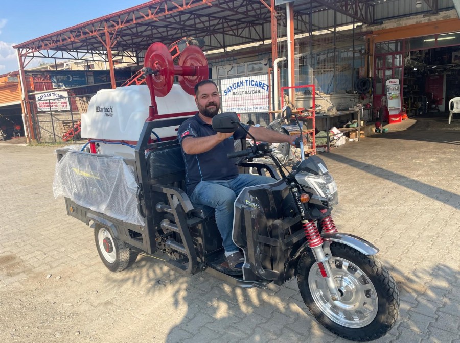 "Patpat ile birçok kaza yaşandı ölümler oldu. Elektrikli araçlar daha güvenli. 35 kilometreye kadar hız yapabiliyor. Bahçesine ilaç atabiliyor, 500 kilogramlık su tankıyla su taşınabiliyor. Şu anda çok talep görüyor. Çiftçi artan girdi maliyetlerini düşürmenin yollarını arıyor. Cebini düşünen çiftçiler bunu alıyor."