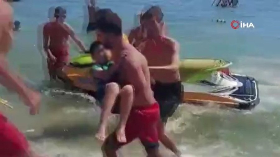 Durumu fark eden cankurtaran ekipleri jet-ski ile çocuğu alıp, ambulansın bulunduğu noktaya götürmek için adeta zamanla yarıştı.