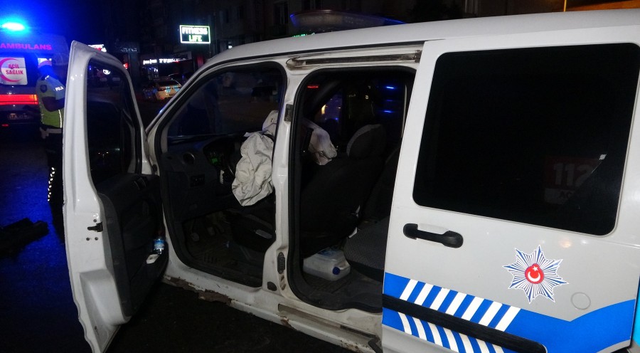 Çarpmanın şiddetiyle polis memuru Y.C. ve otomobilde bulunan İ.D. isimli yolcu yaralandı.