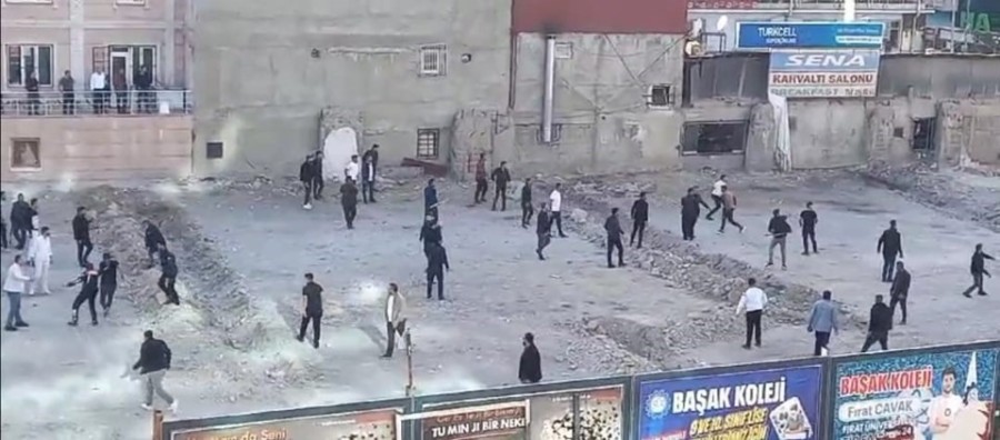Kavga anı cep telefonuyla görüntülenirken, yaralıların olduğu bildirildi. Polis ekipleri bölgede geniş güvenlik önlemi aldı.