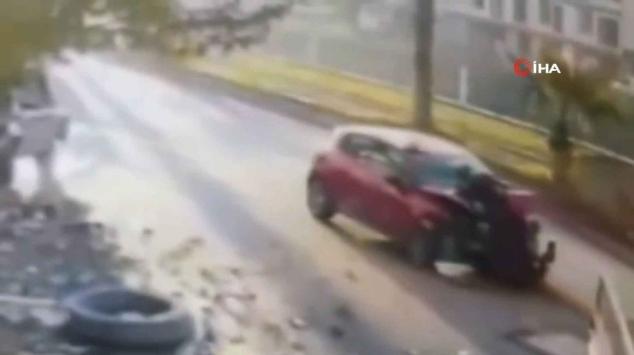 Kaza, çevredeki bir iş yerinin güvenlik kamerasınca kaydedildi.